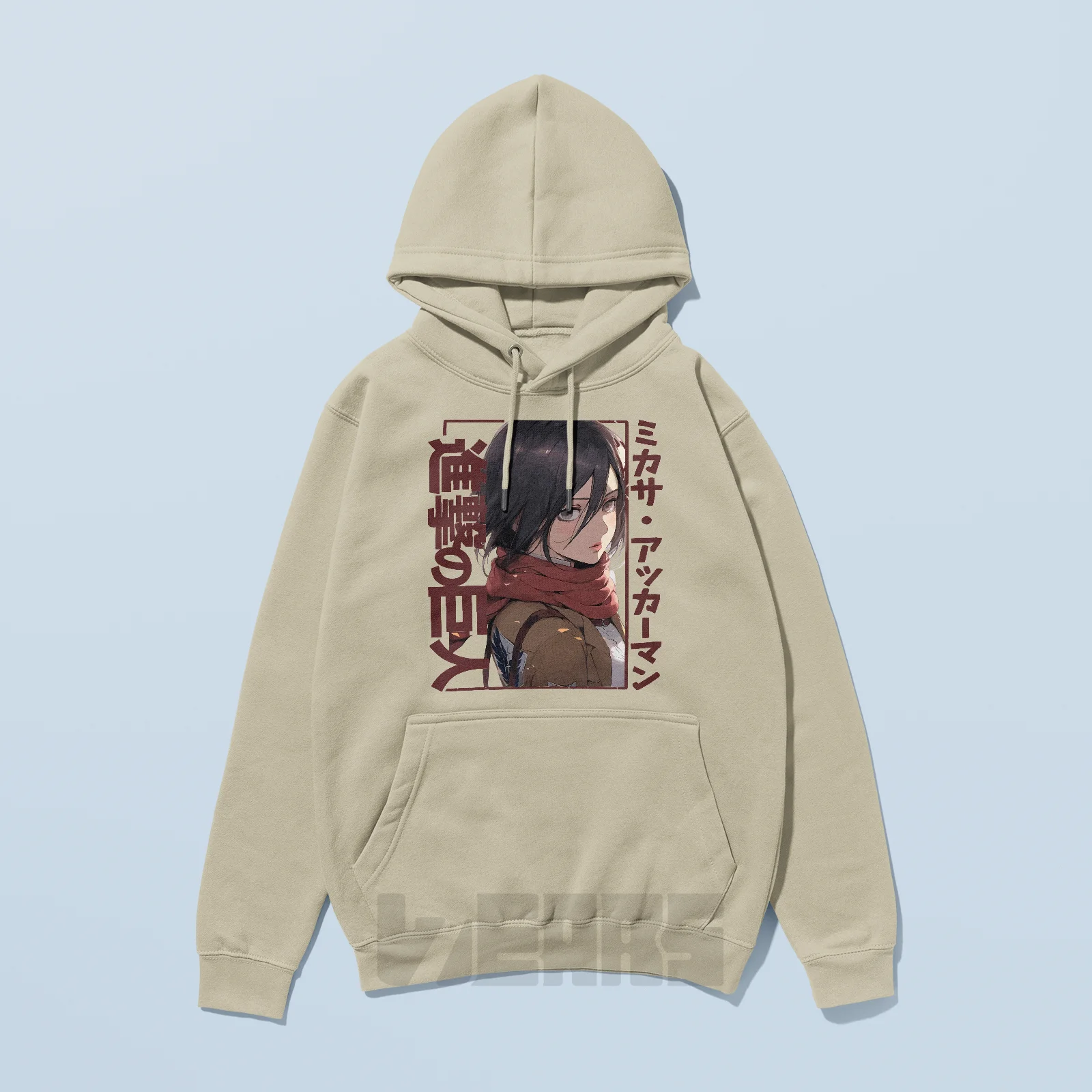 هودی Attack on Titan طرح میکاسا ست اختصاصی 7wears از جنس دورس سه نخ تو کرک هست که بسیار گرم و مناسب فصل پاییز و زمستونه. طرحهای اختصاصی ما از جمله کالکشن اتک آن تایتان (Attack on Titan)، به صورت دیجیتال روی هودی چاپ میشن و جوهر به خورد هودی میره تا شما همراهان عزیز بتونید راحت اونها رو بشورید و سالها ازشون استفاده کنید.