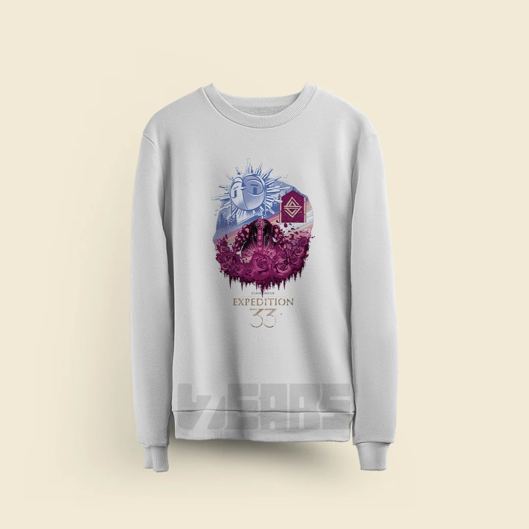 سویشرتکالکشن Clair Obscur: Expedition 33سویشرت بازی اکسپدیشن 33 طرح اسکیه از جنس دورس سه نخ مناسب فصول پاییز و زمستان با بهترین کیفیت چاپ دیجیتال
