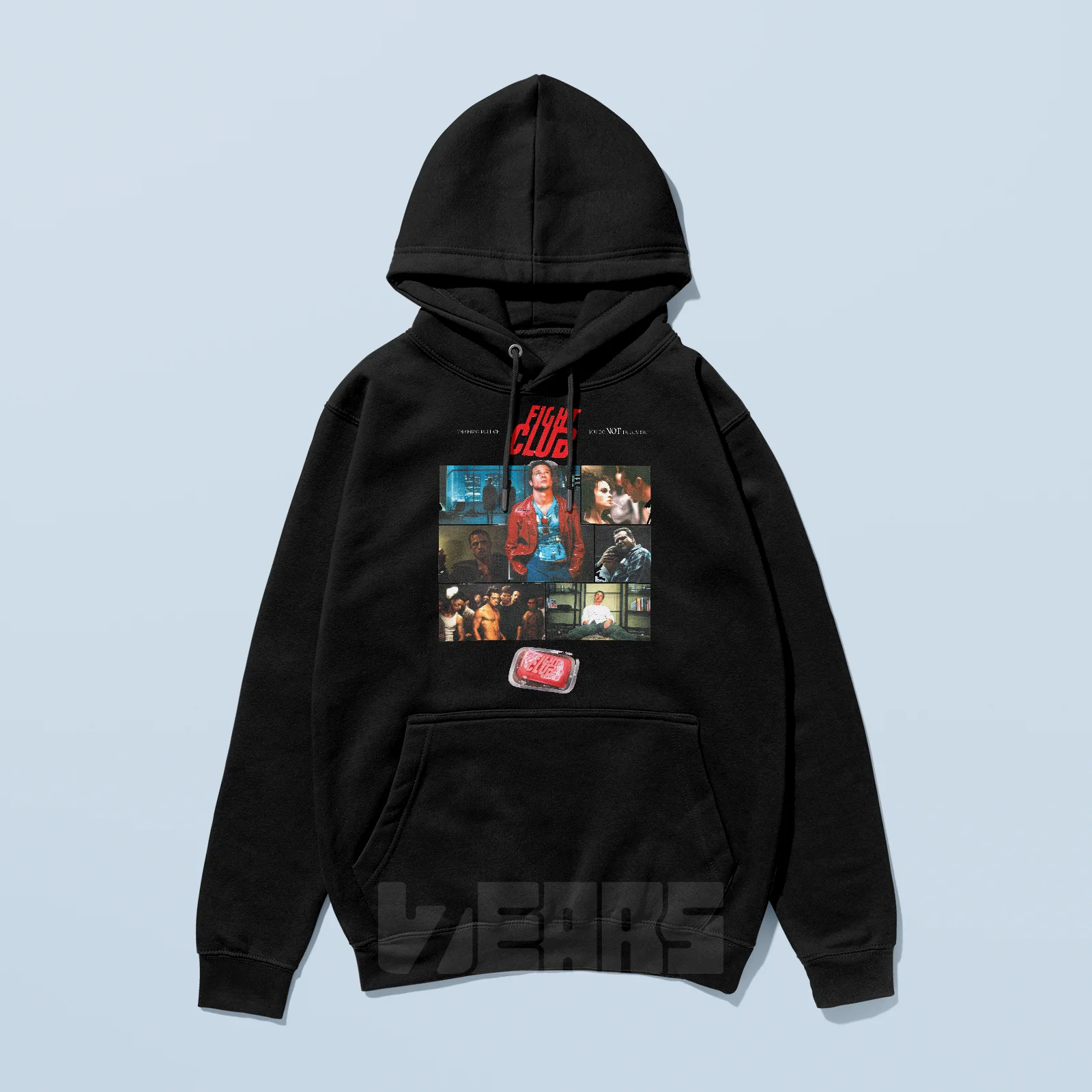 کالکشن پوشاک Fight Club الهامگرفته از فیلم کالت و ماندگار Fight Club (1999) به کارگردانی David Fincher و با بازی درخشان Brad Pitt و Edward Norton است؛ فیلمی که به نماد اعتراض، آشوب فکری و نقد مصرفگرایی در فرهنگ مدرن تبدیل شد. این مجموعه شامل هودی، سوییشرت و تیشرت فایت کلاب بوده و برای کسانی طراحی شده که فراتر از کلیشهها فکر میکنند.