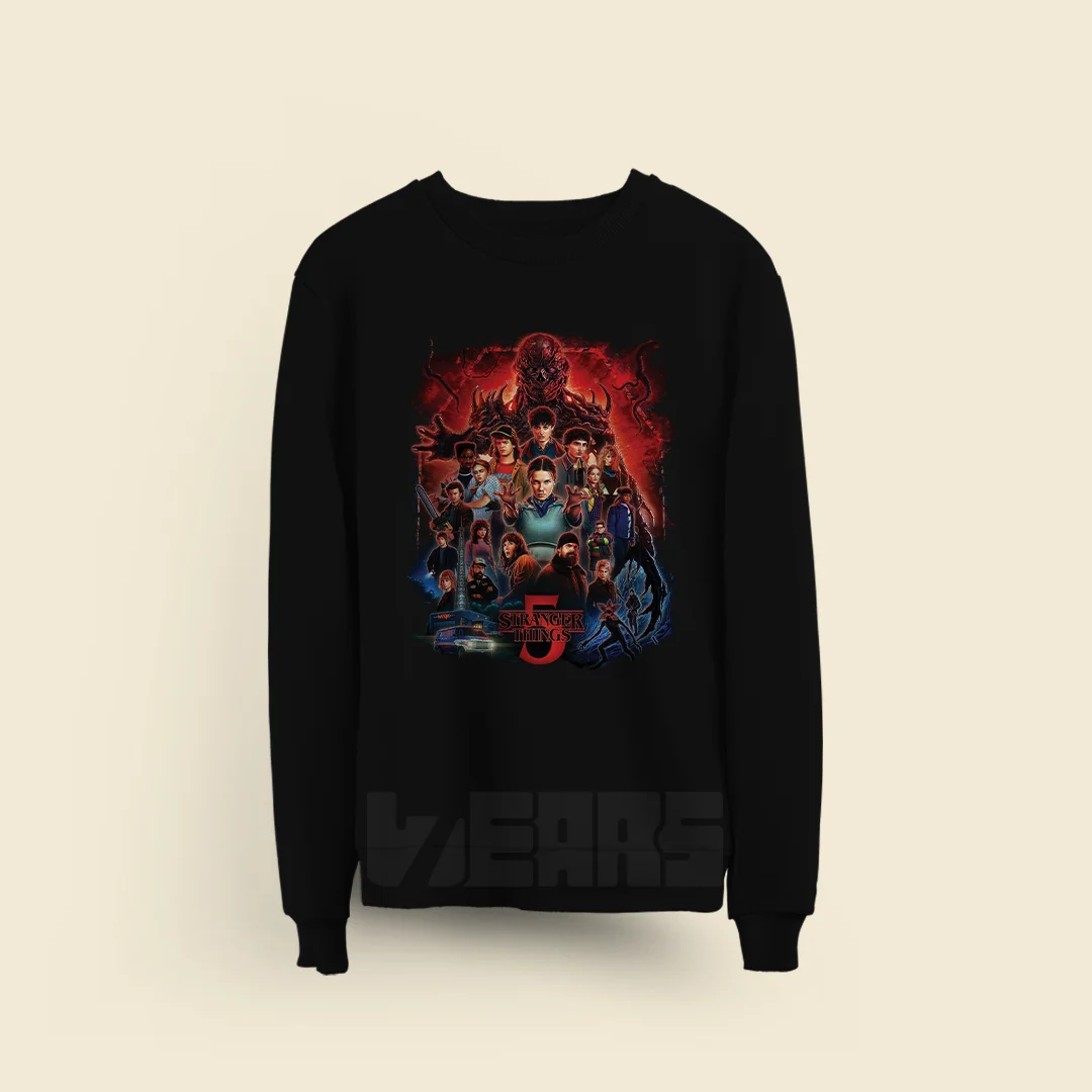 سویشرتکالکشن Stranger Thingsسویشرت استرنجر تینگز طرح پوستر رسمی فصل آخر از جنس دورس سه نخ مناسب فصول پاییز و زمستان با بهترین کیفیت چاپ دیجیتال