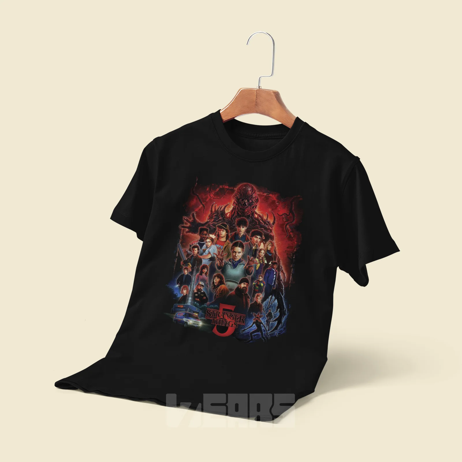 تیشرتکالکشن Stranger Thingsتیشرت استرنجر تینگز طرح پوستر رسمی فصل آخر، از جنس 100 درصد نخ بدون ناخالصی مناسب تمام فصول با بهترین کیفیت چاپ دیجیتال.