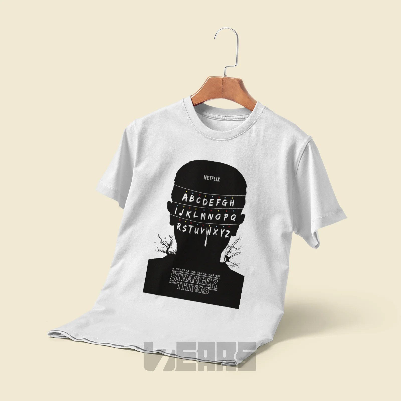 تیشرت Stranger Things طرح حروف، از جنس 100 درصد نخ بدون ناخالصی مناسب تمام فصول با بهترین کیفیت چاپ دیجیتال.