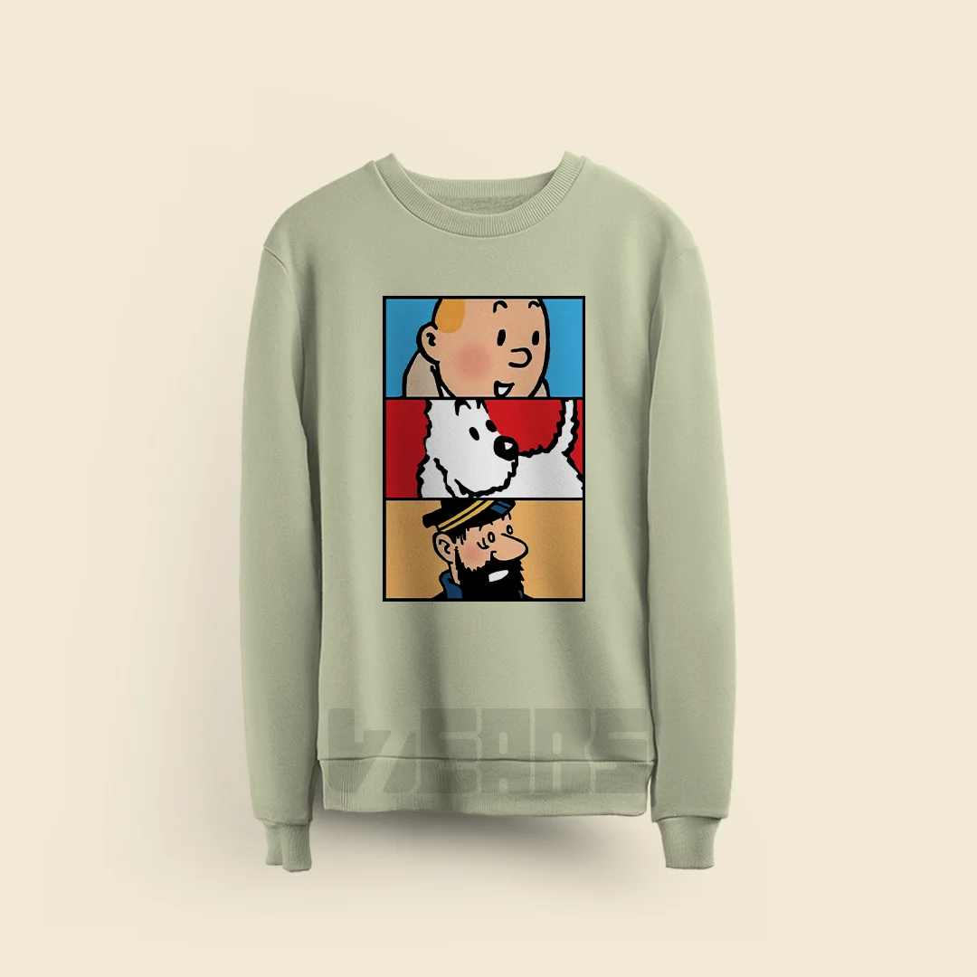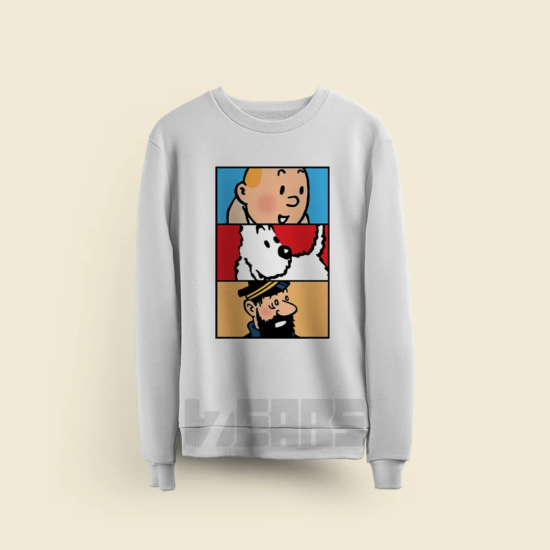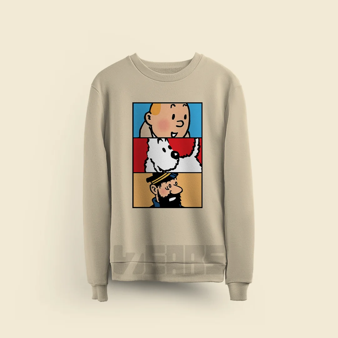 سویشرت Tintin طرح ماجراهای تن تن از جنس دورس سه نخ مناسب فصول پاییز و زمستان با بهترین کیفیت چاپ دیجیتال