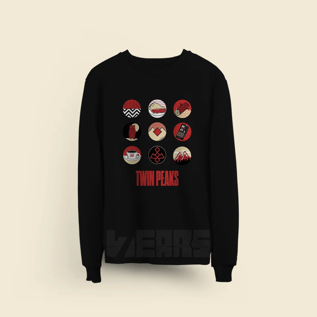 Twin Peaksپوشاکسویشرتسویشرت دورس تویین پیکس طرح نمادهای Twin Peaks از جنس دورس سه نخ مناسب فصول پاییز و زمستان با بهترین کیفیت چاپ دیجیتال