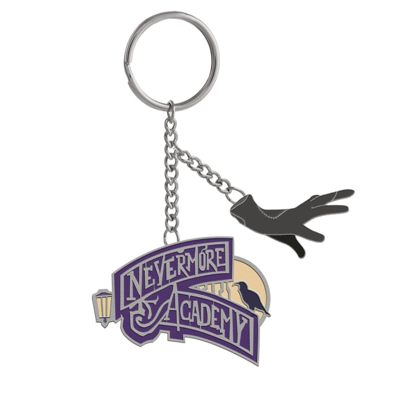 اگر به دنیای تاریک، عجیب و بامزه‌ی سریال پرطرفدار Wednesday علاقه‌مند هستید، این جاکلیدی خاص وارداتی با طرح Nevermore Academy دقیقاً همان چیزی است که باید همیشه همراه‌تان باشد. طراحی منحصربه‌فرد آن شامل نام آکادمی، تصویر کلاغ نمادین و دست معروف “تینگ (Thing)” است که همگی در کنار هم، این جاکلیدی را به یک آیتم جذاب و کلکسیونی برای طرفداران سریال تبدیل می‌کنند.